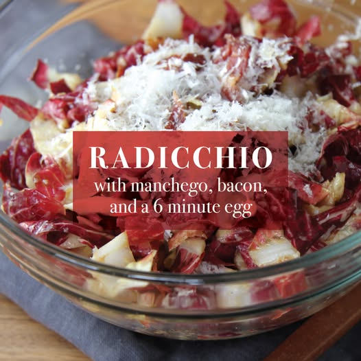 Try this unique salad featuring beautifully bitter radicchio. Paired with the saltiness of Manchego cheese and bacon, it’s all topped with a 6-minute egg for an oh, sooo good combination!