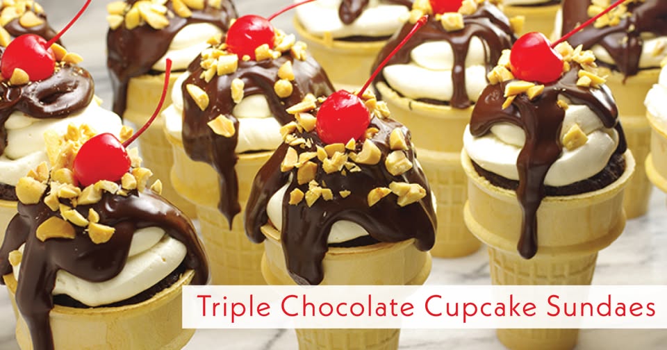 Kids will love these cake cones! We like these chocolate cupcakes because of their dense moistness and full-bodied chocolate flavor. The vanilla buttercream frosting simulates whipped cream while the ganache